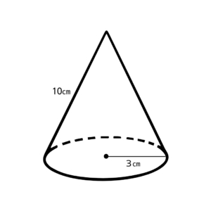 下図のような円錐の表面積を求めなさい。