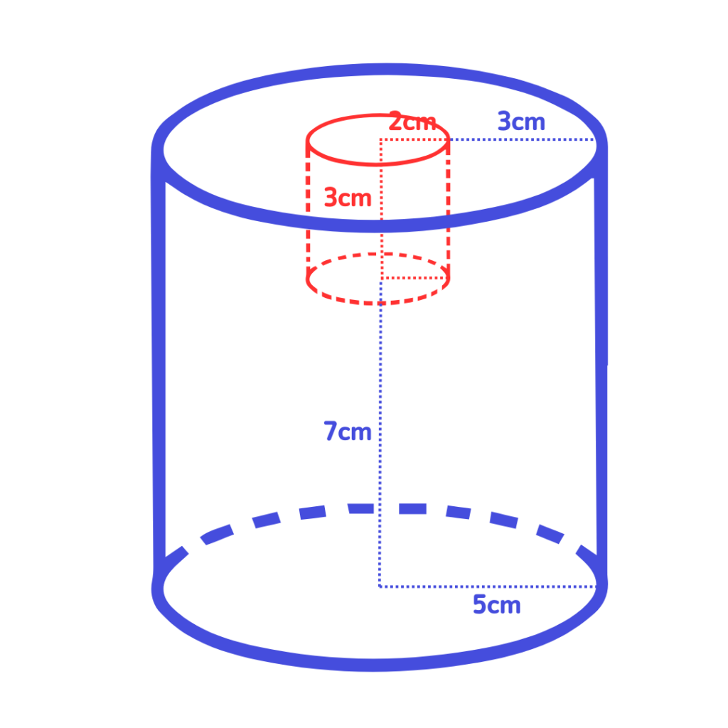 【青い円柱の体積】-【赤い円柱の体積】