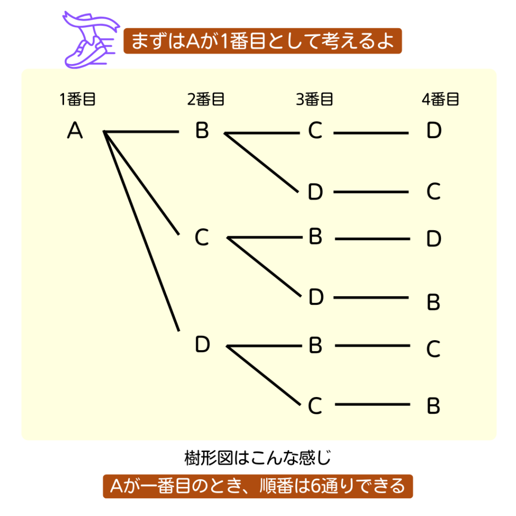 同じ感じで、B・C・Dが1番目として考えると…