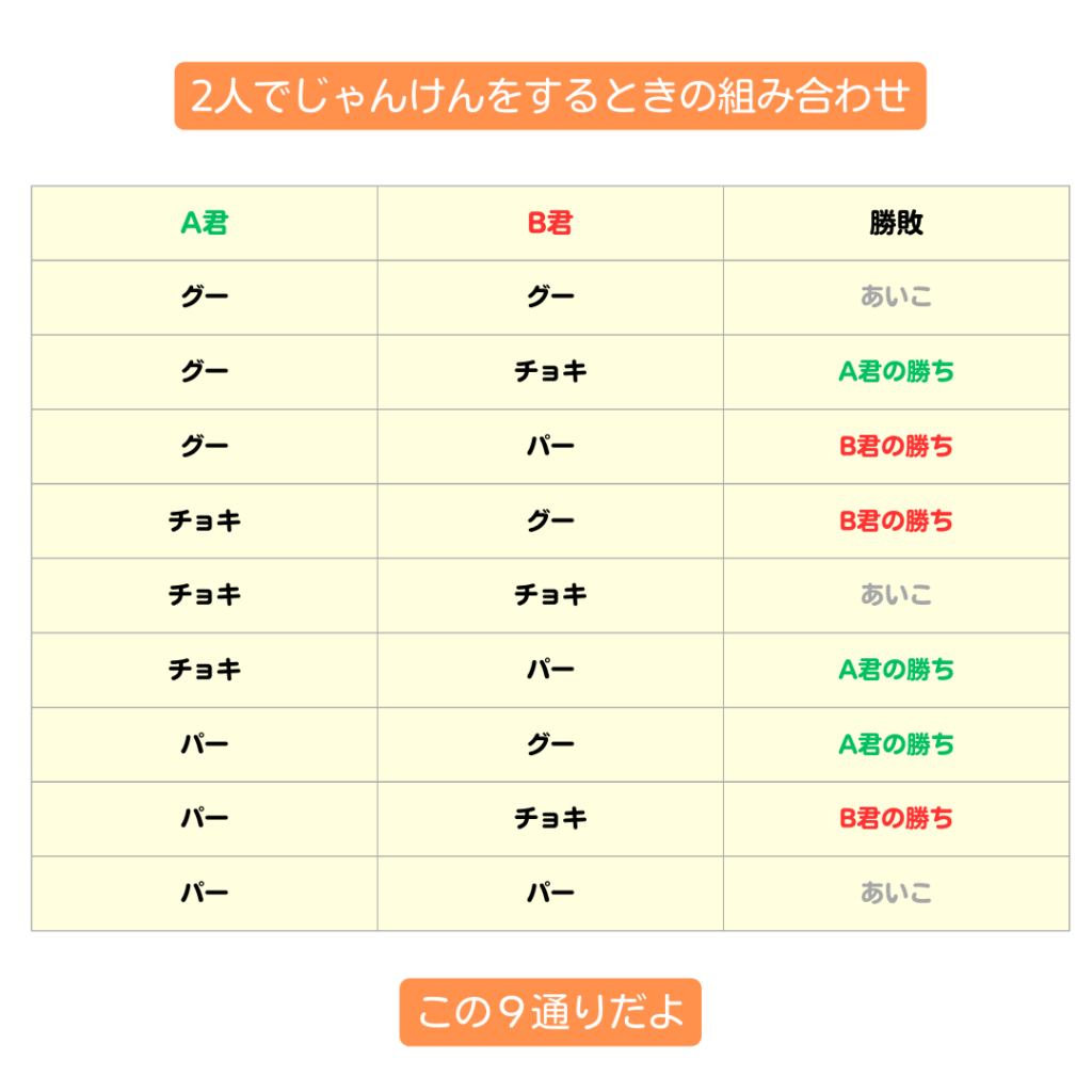 じゃんけんの組み合わせの場合は