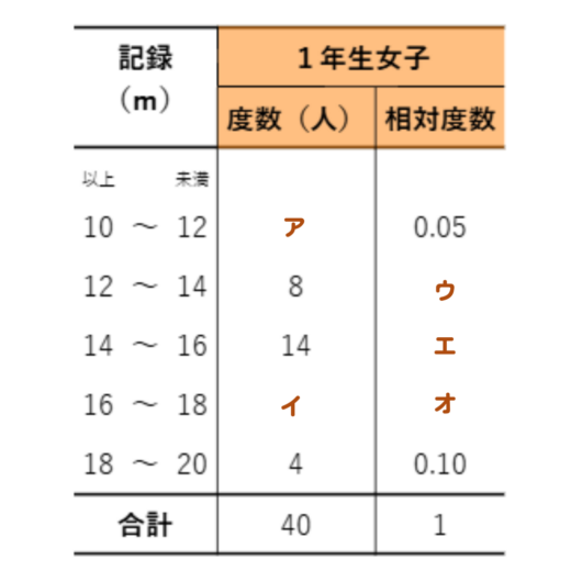 全部の度数の合計からイ以外の度数の合計をひけばOK✨