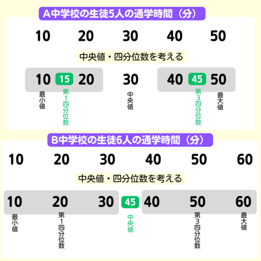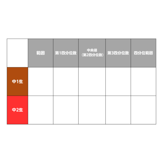 データを大きさ順に並べて、4等分する値が四分位数です。