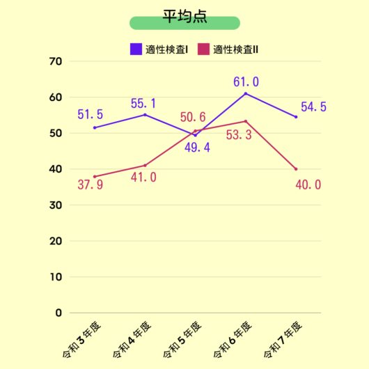 直近(令和7年度)は昨年よりも適性検査の平均点が