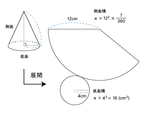 円錐は展開すると下の図のようになります。