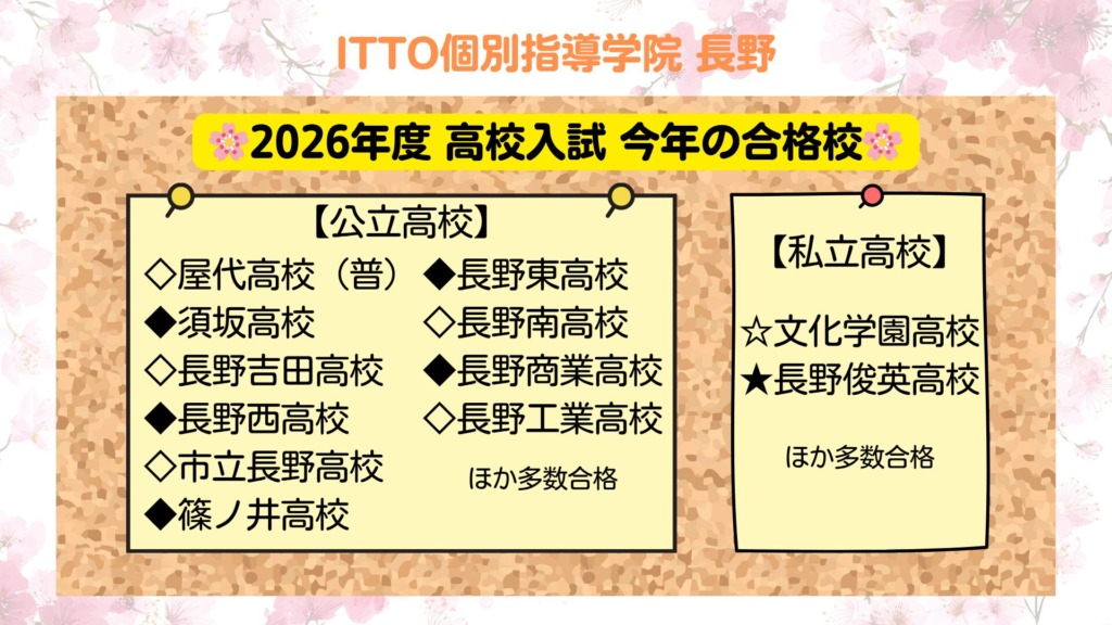 今年もITTO個別指導学院 長野のみんなが見事にさまざまな高校に合格しました❗